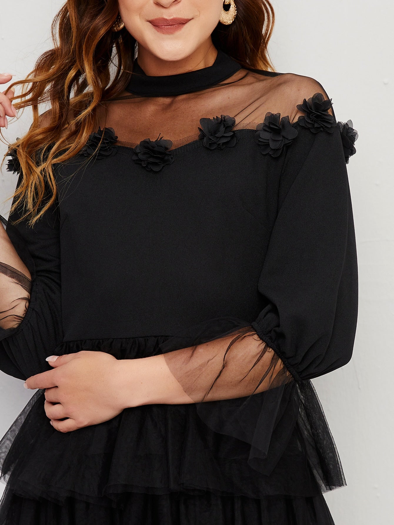 Glamorous Plain Zipper Three Quarter Length Sleeve Stand Collar Layered/Tiered High Waist Long Dress
