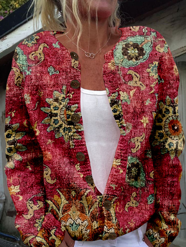 Loose Crew Neck Long Sleeve Christmas Casual Regular Jacket