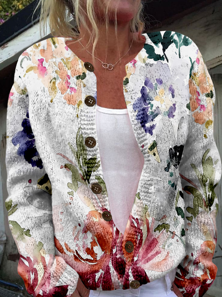 Loose Crew Neck Long Sleeve Floral Casual Regular Jacket