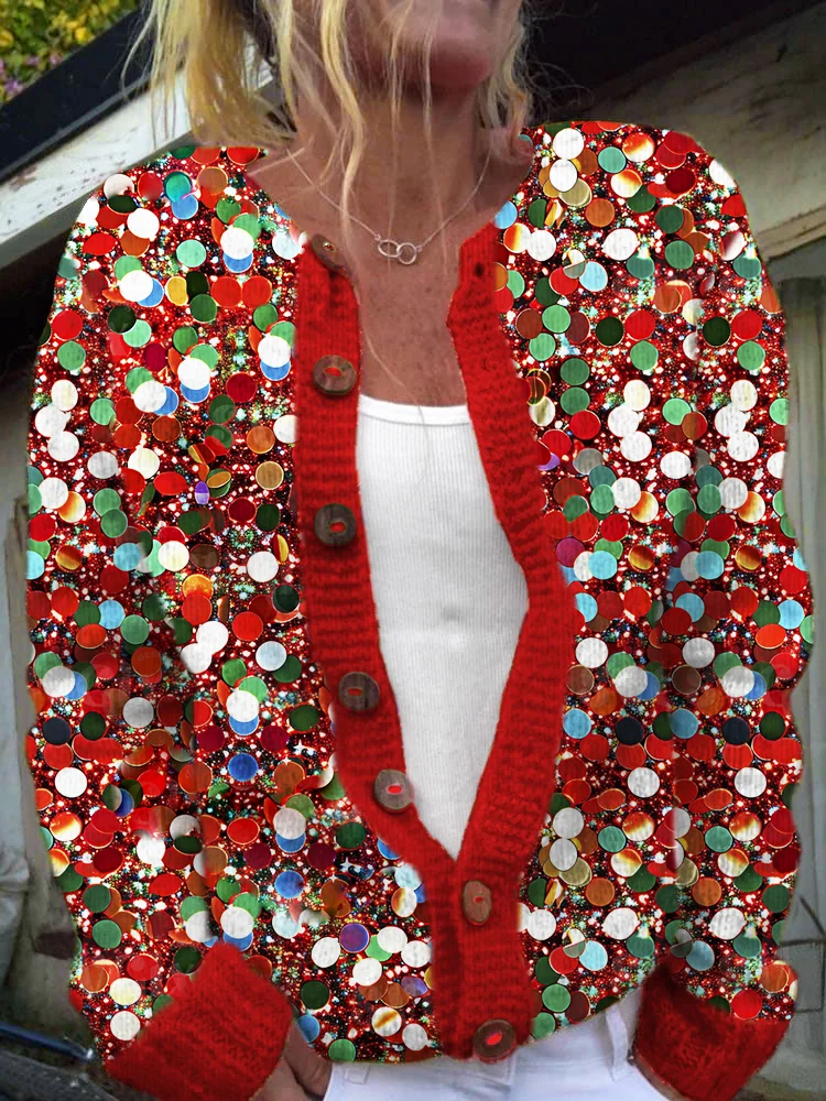 Loose Crew Neck Long Sleeve Geometric Casual Regular Jacket
