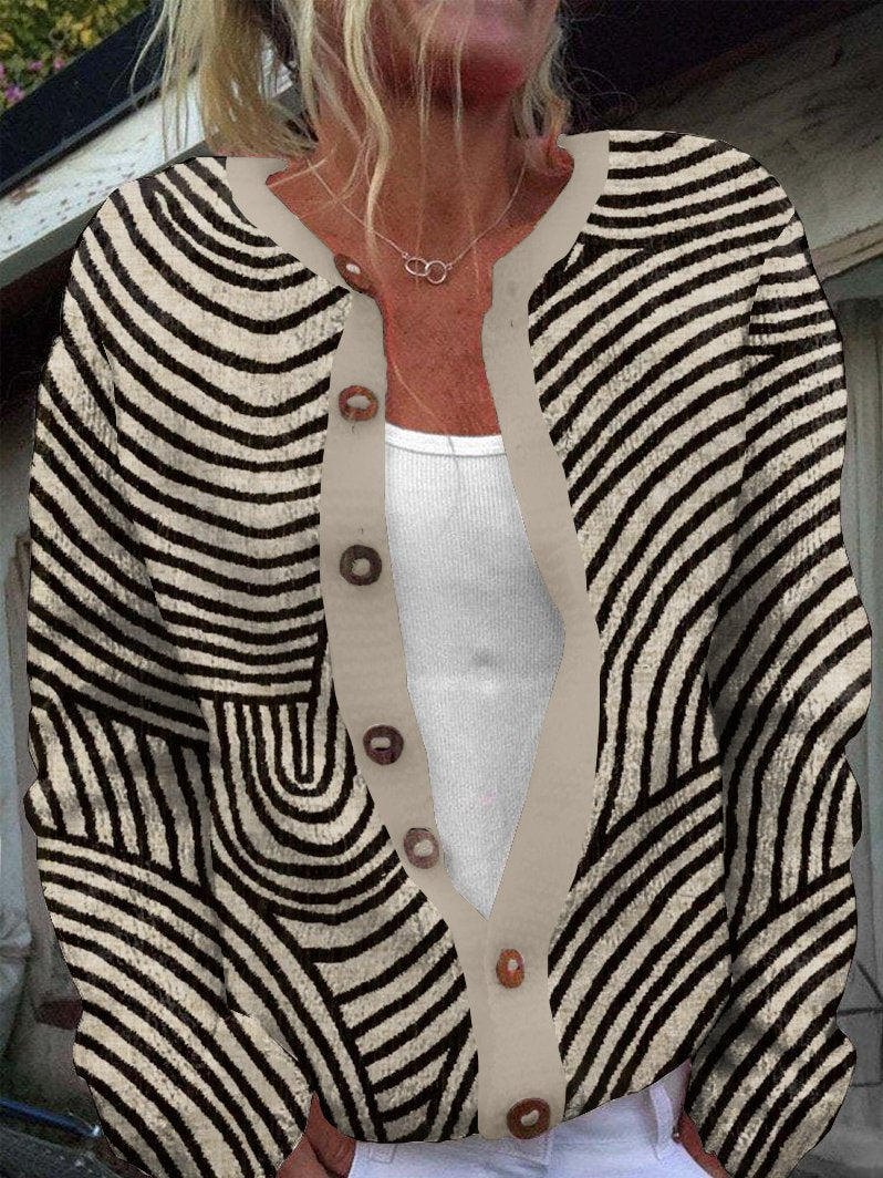 Loose Long Sleeve Abstract Stripes Casual Regular Cardigan