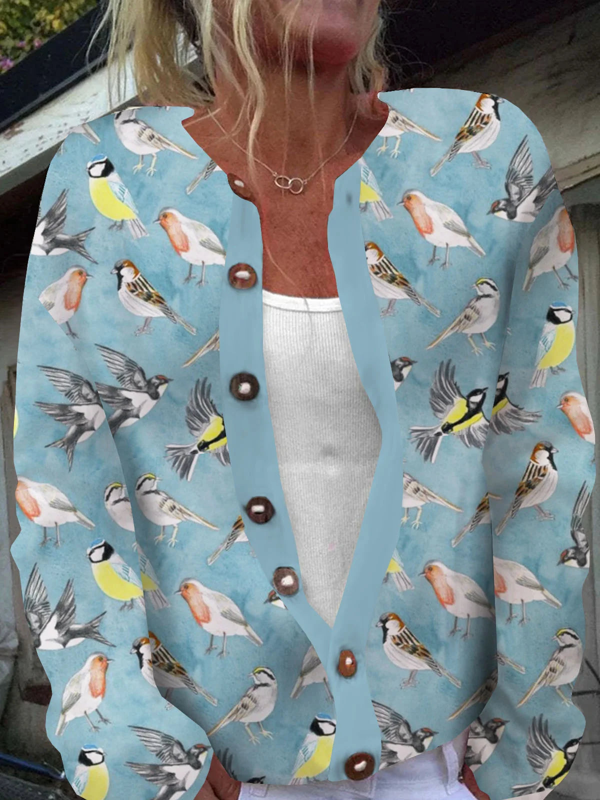 Loose Long Sleeve Bird Casual Regular Cardigan