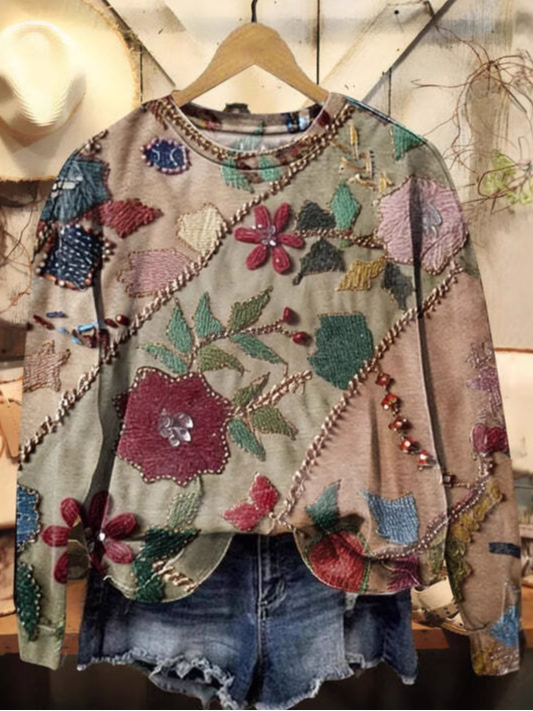 Loose Long Sleeve Crew Neck Ethnic Casual Regular Sweatshirt