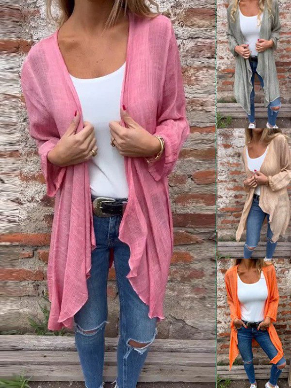 Loose V Neck Long Sleeve Plain Casual Mid-Long Cardigan