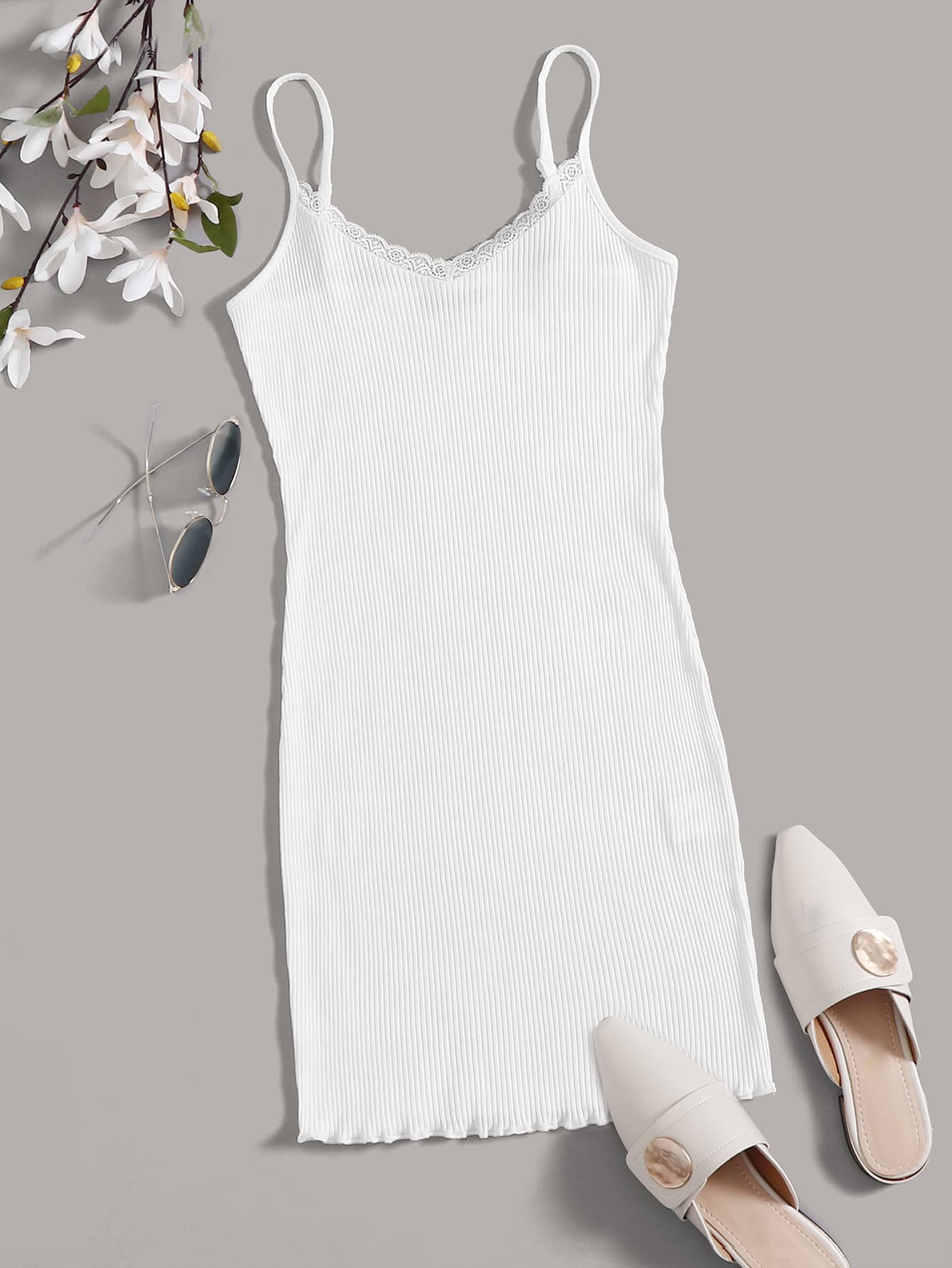 Plain Lettuce Trim Sleeveless Spaghetti Strap Pencil Short Dress