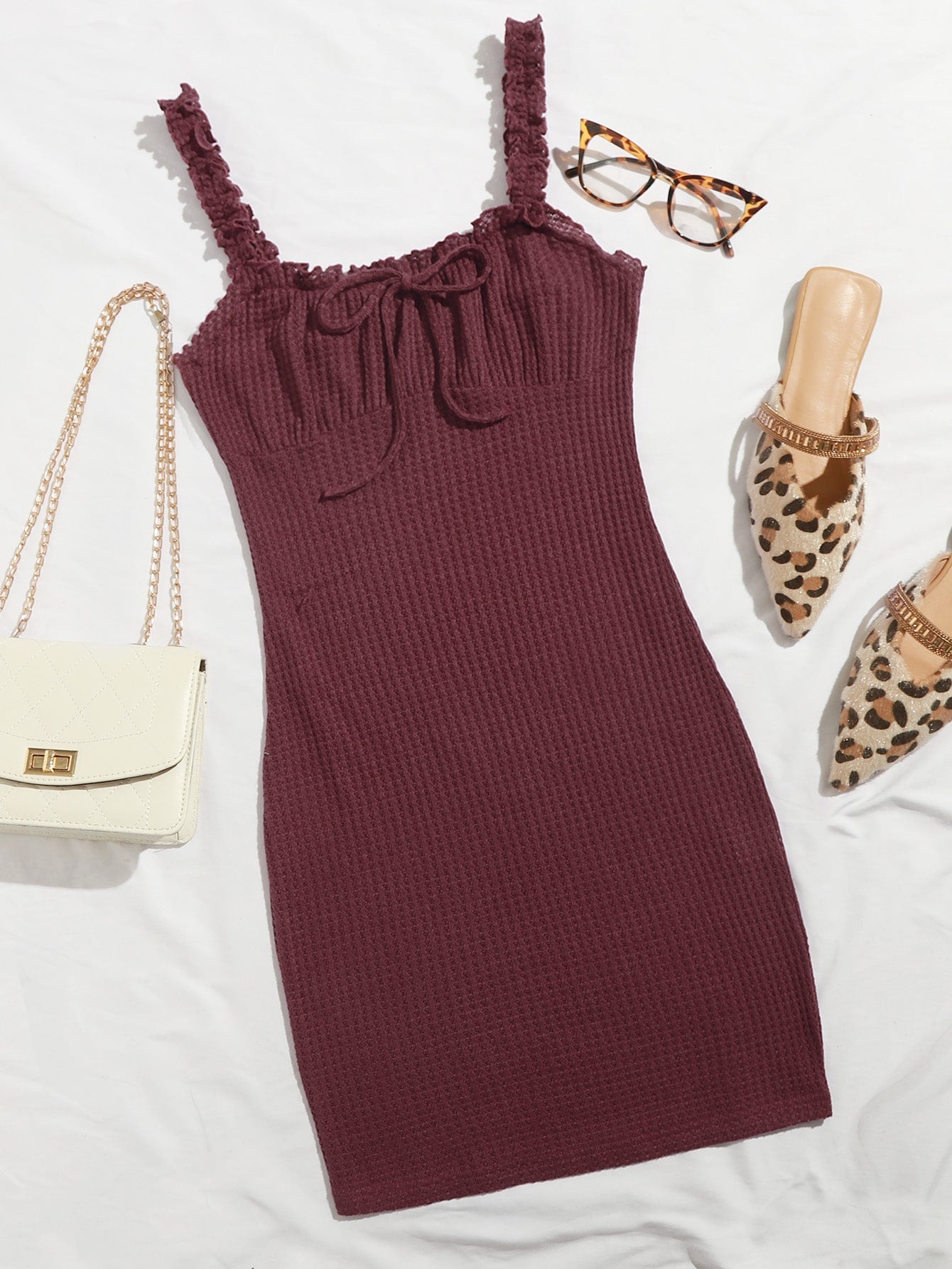 Plain Ruched Bust Sleeveless Straps Semi-Sheer Pencil Natural Short Dress