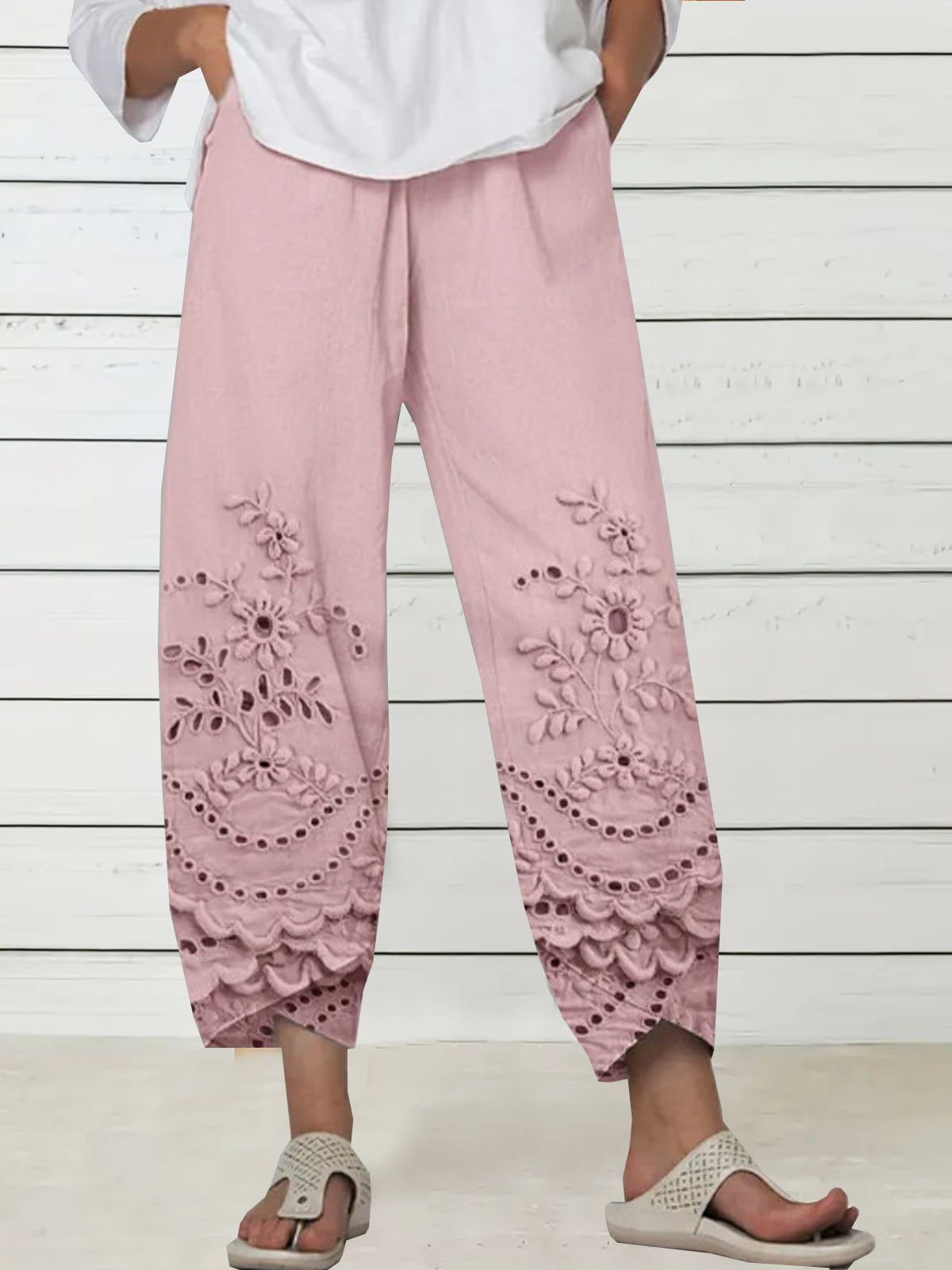 Plus Size Casual Floral Pocket Stitching Loose Long Pants