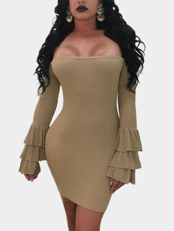 Vente en gros Robes Moulantes À Manches Longues Et À Épaules Dénudées Abricot