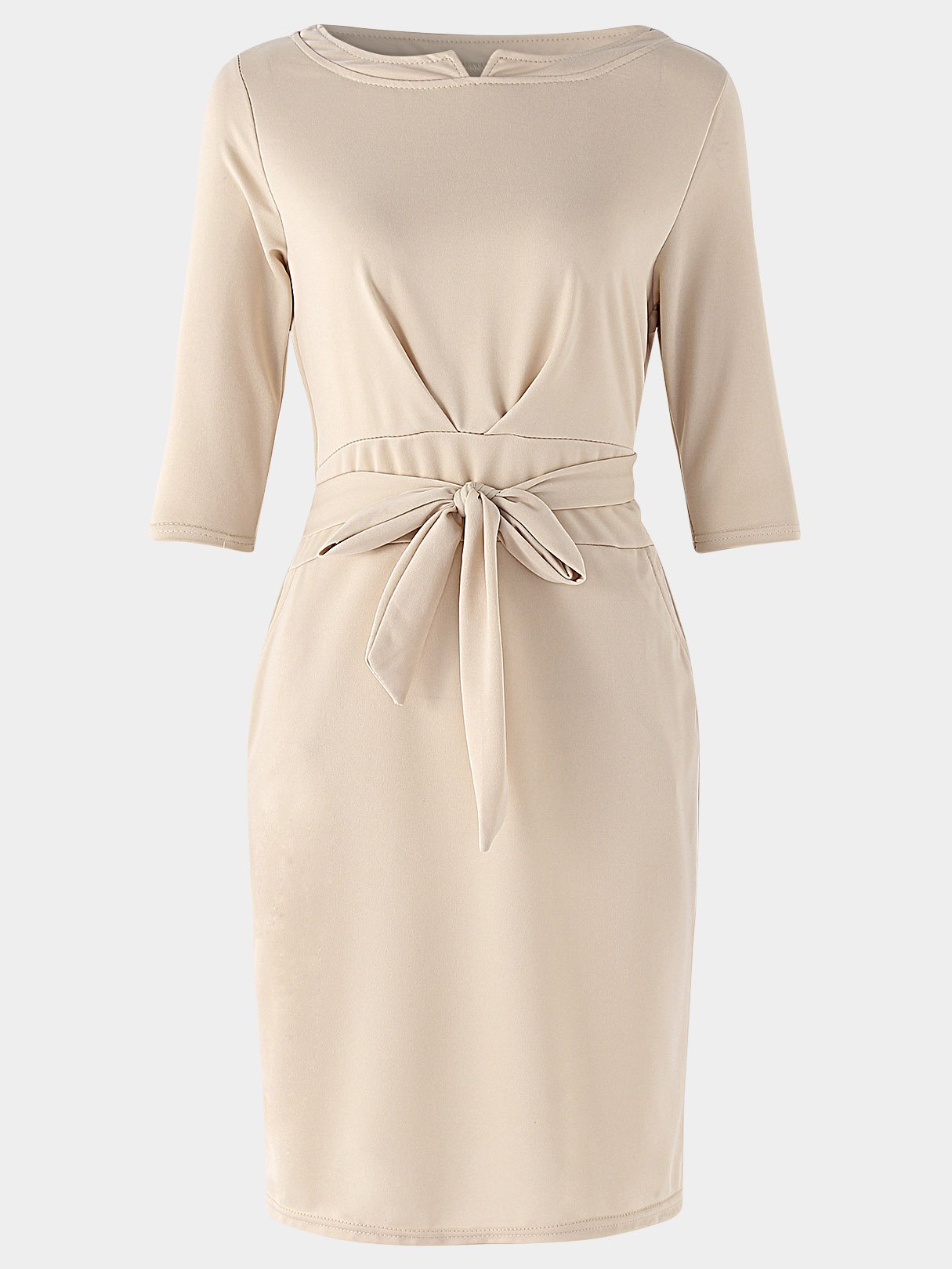 Robe mi-longue beige à lacets et manches mi-longues, vente en gros