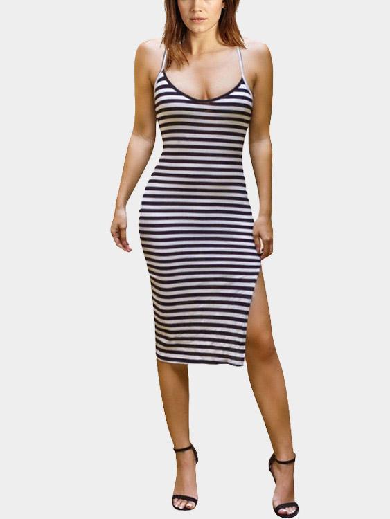 Robes noires à ourlet fendu, sans manches, à rayures, dos nu, vente en gros