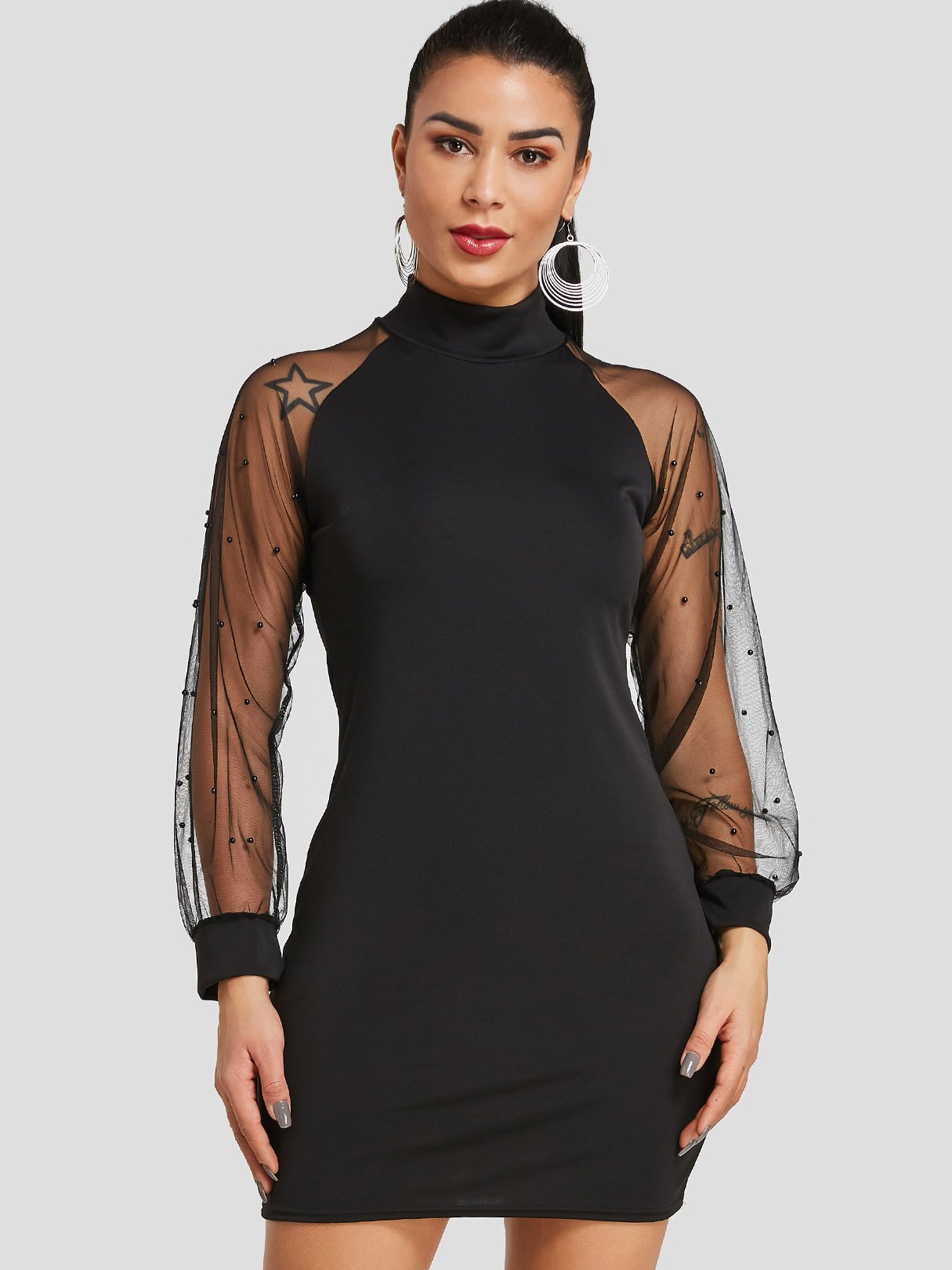 Vente en gros Robes Moulantes Transparentes À Manches Longues Noires