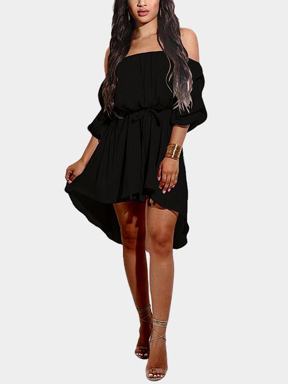 Robes noires à ourlet incurvé, épaules dénudées, demi-manches, vente en gros