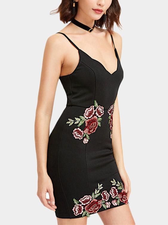 Vente en gros Robes Brodées Noires À Col En V