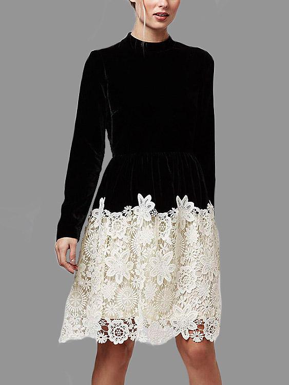 Vente en gros Robes En Dentelle Noires Et Blanches À Manches Longues