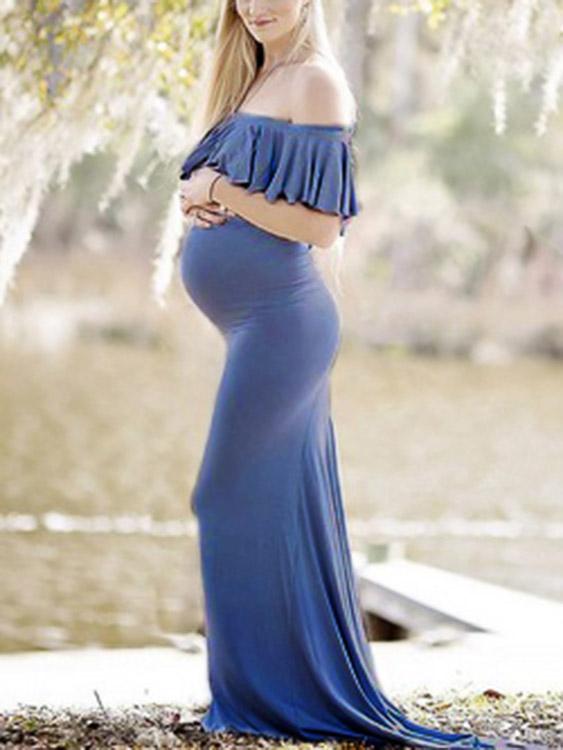 Vente en gros Robe Bleue À Manches Courtes Et À Épaules Dénudées