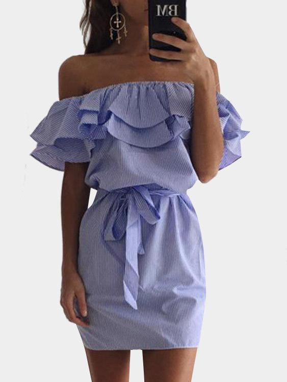 Robes bleues à nouer à rayures et à manches courtes, vente en gros