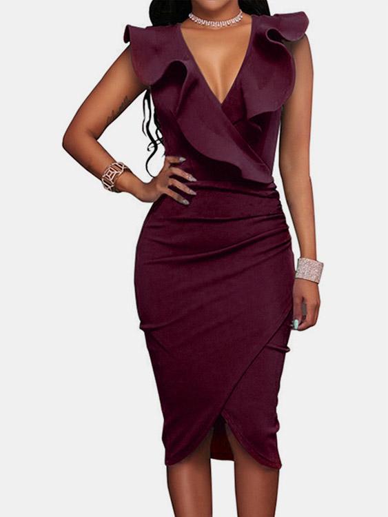 Robes bleues à taille haute, col en V, sans manches, uni, croisées sur le devant, vente en gros