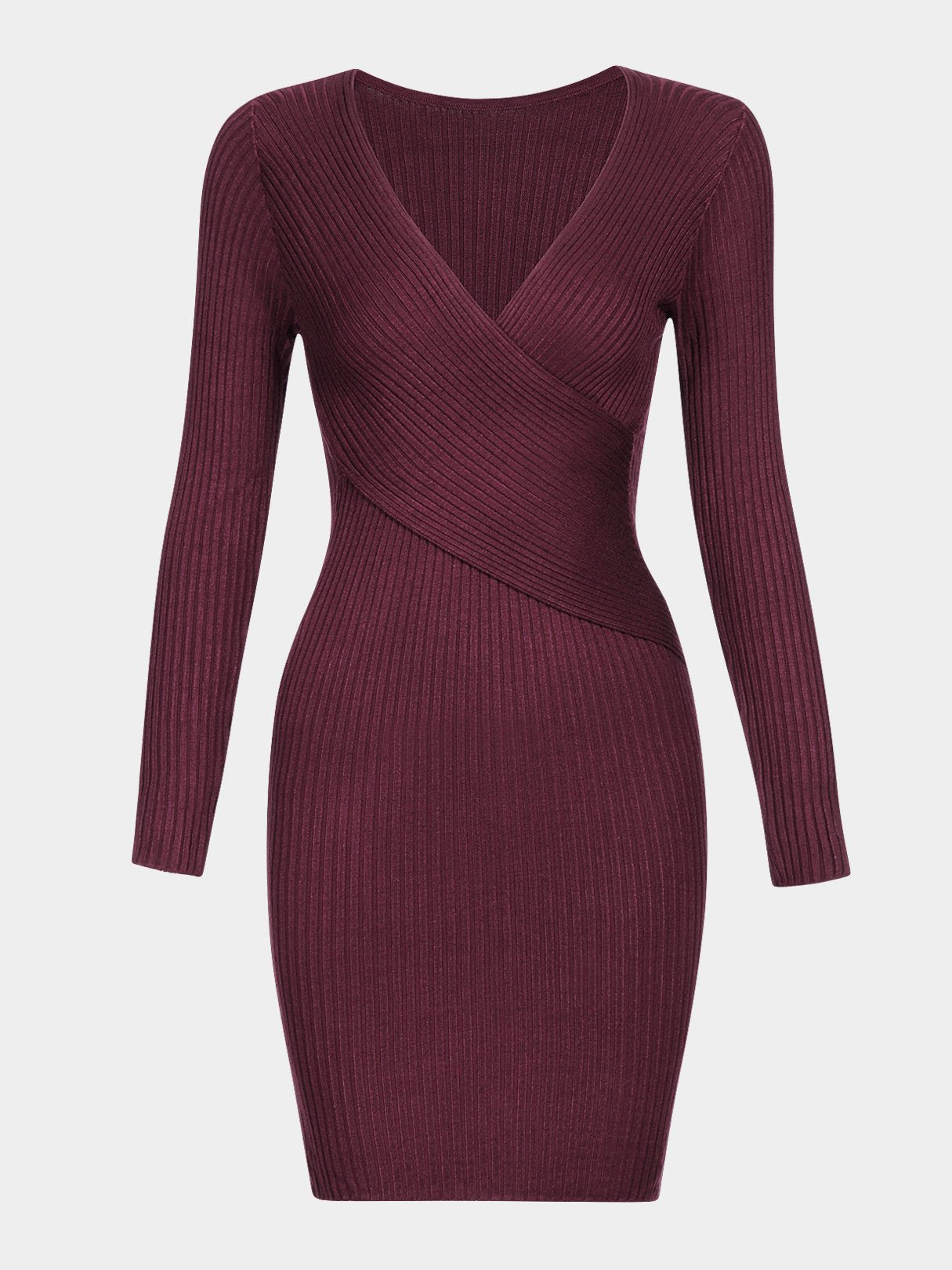 Vente en gros Robes Moulantes À Col En V Et Manches Longues Bordeaux