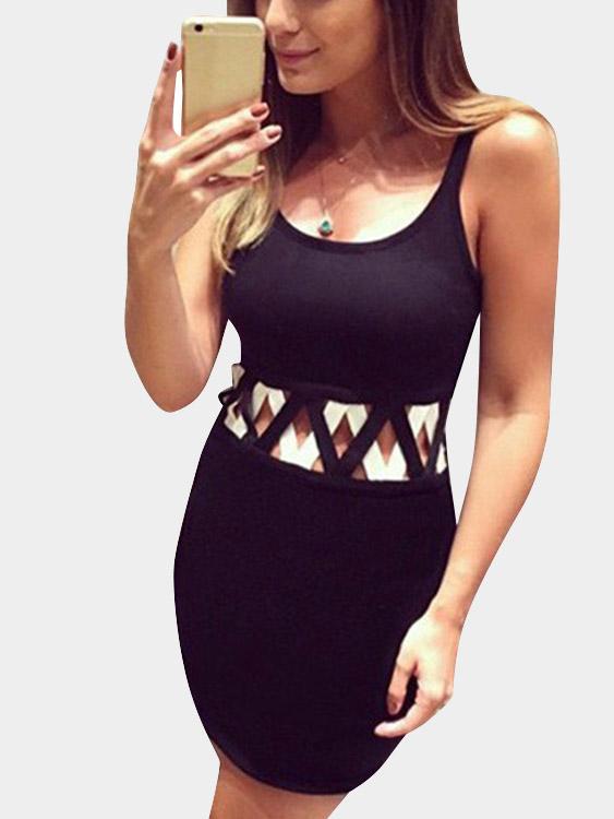 Robes noires moulantes sexy de couleur contrastée en gros avec détails découpés