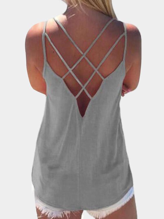Gros licou col général épaule froide plaine croisé devant dos nu sans manches Camis
