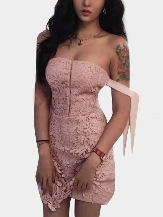 Vente en gros Robes En Dentelle Sans Manches Roses À Épaules Dénudées