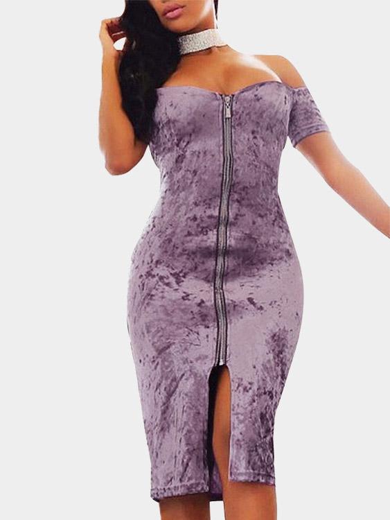 Robes violettes à épaules dénudées, manches courtes, ourlet fendu, vente en gros