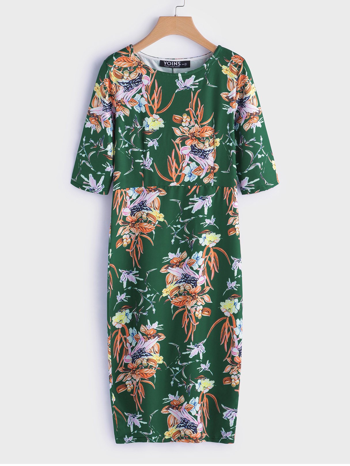 Robes à col rond et demi-manches à imprimé floral et ourlet fendu, vente en gros