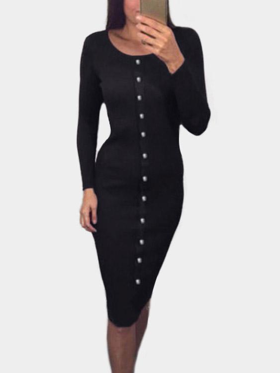 Vente en gros Robe Midi Unie À Manches Longues Et Col Rond