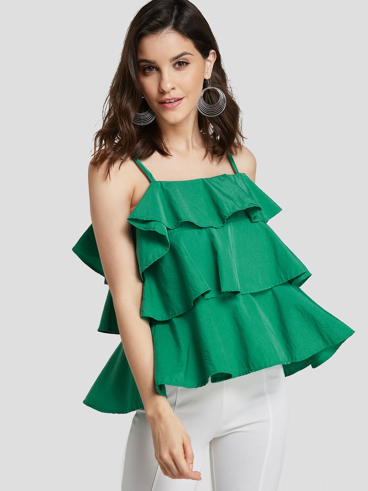 Camis vert sans manches à bretelles spaghetti à plusieurs niveaux et col carré en gros