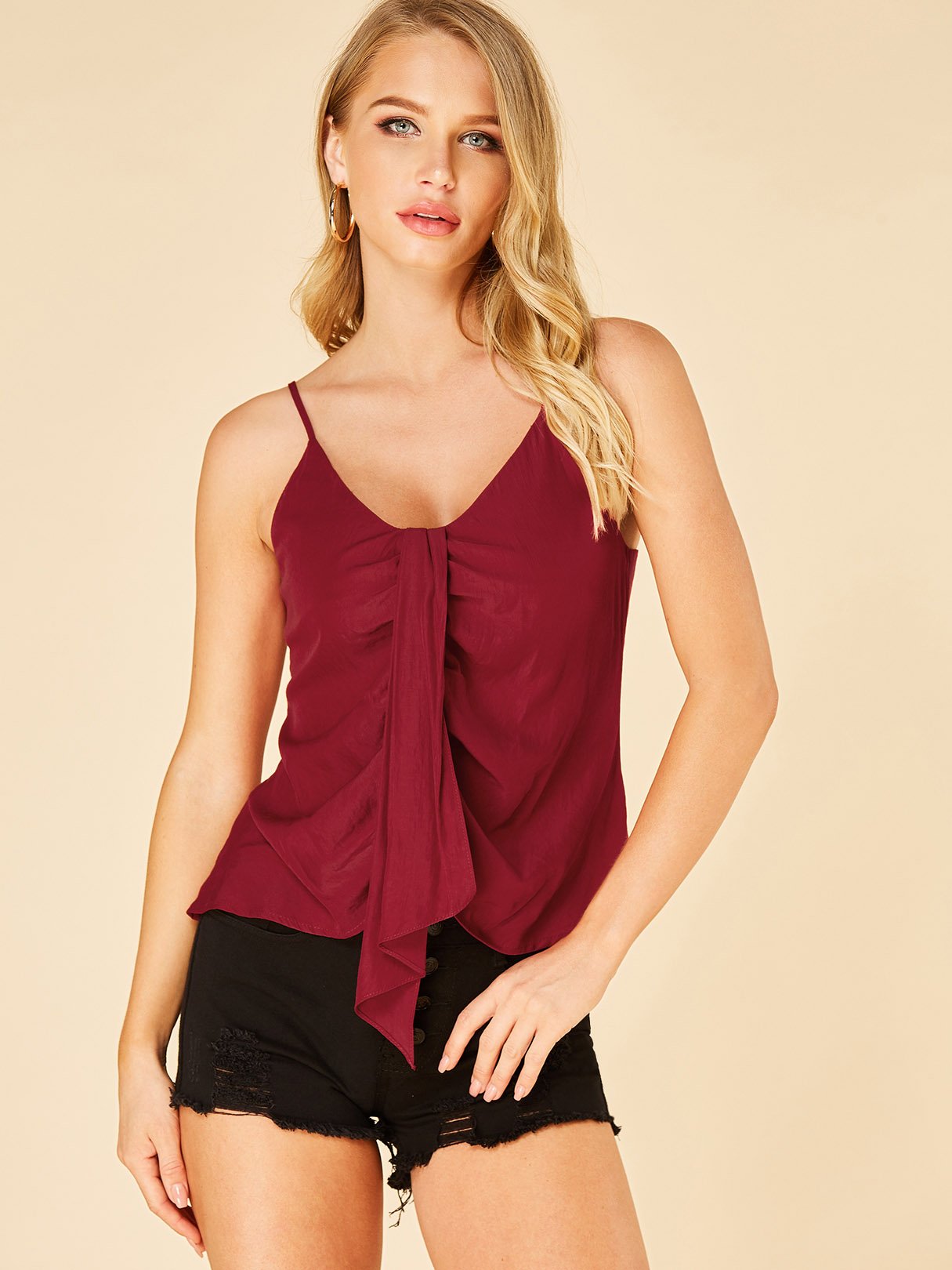 Vente en gros Camis bordeaux uni à col en V et bretelles spaghetti sans manches