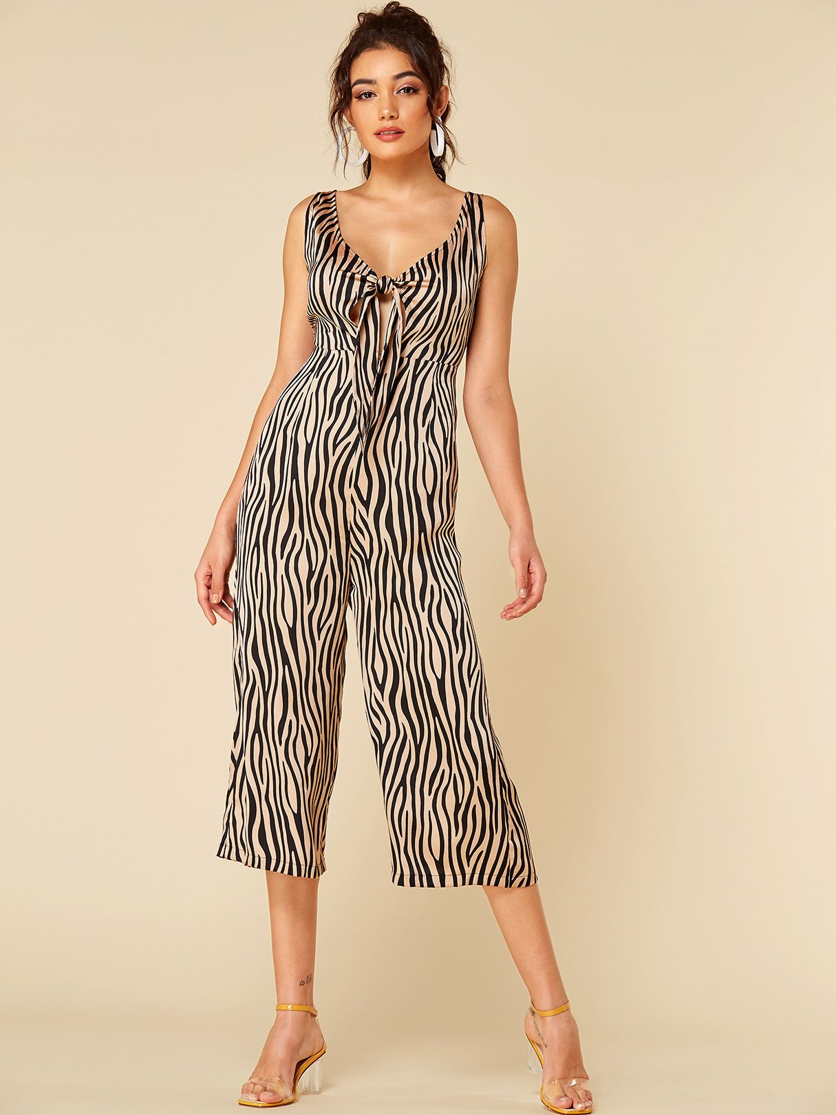 Vente en gros Body orange sans manches à capuche et dos nu zébré à col en V