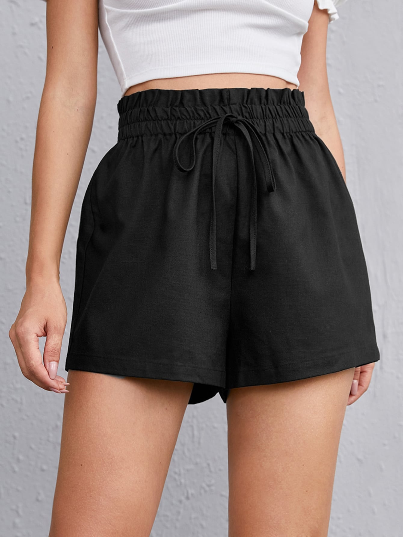 Boho Plain Paper Bag Waist High Waist Women Shorts