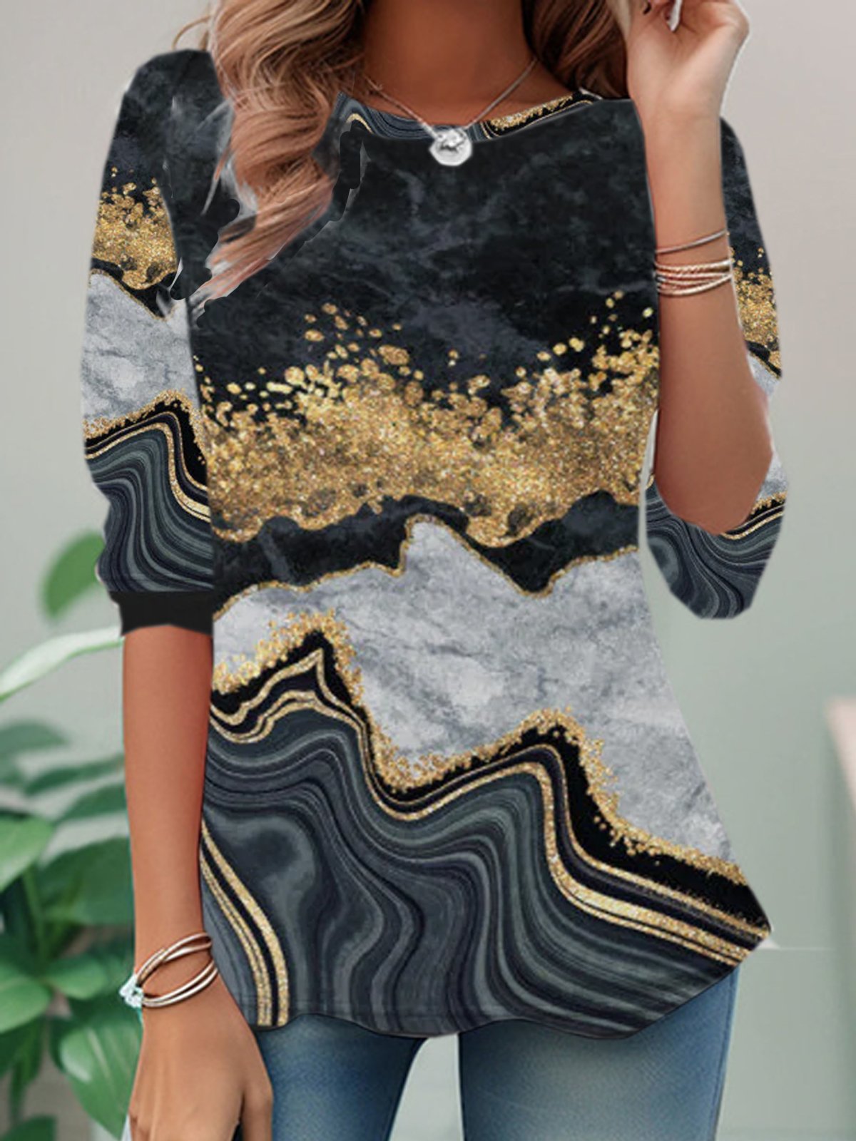 Casual Long Sleeve Crew Neck Abstract Loose Regular T-Shirt