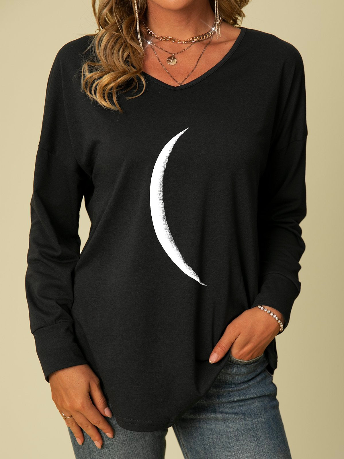 Casual Long Sleeve Crew Neck Plain Regular T-Shirt