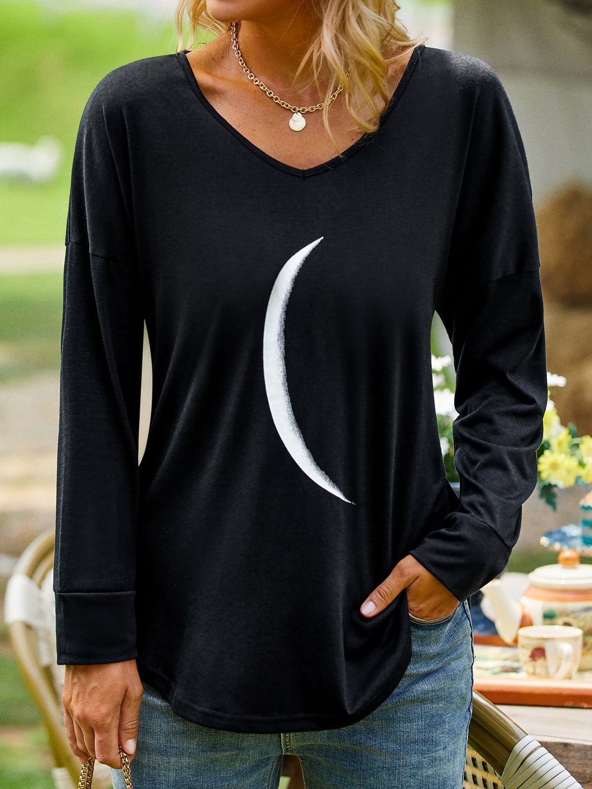 Casual Long Sleeve Crew Neck Plain Regular T-Shirt