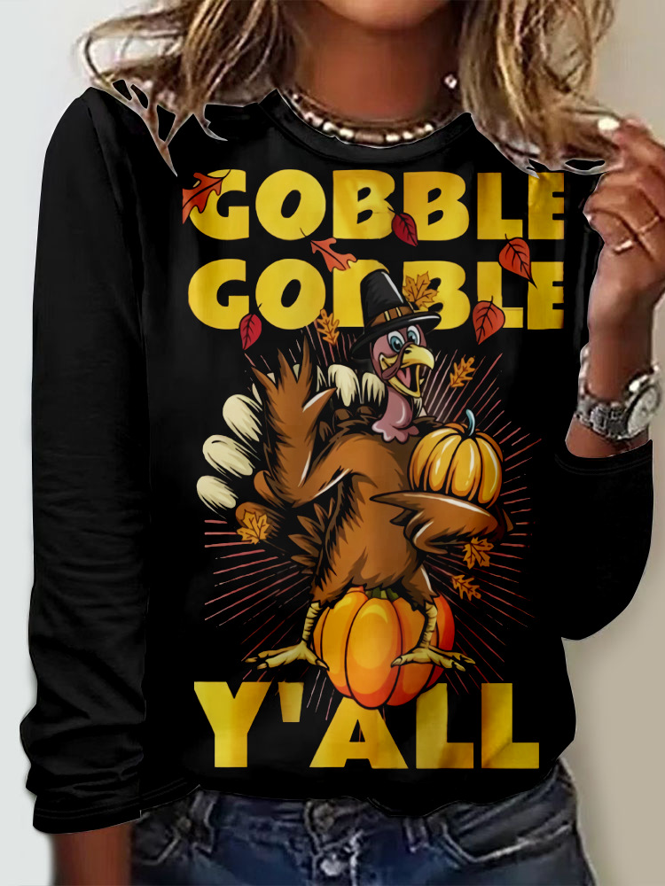 Casual Long Sleeve Crew Neck Text Letters Loose Regular T-Shirt