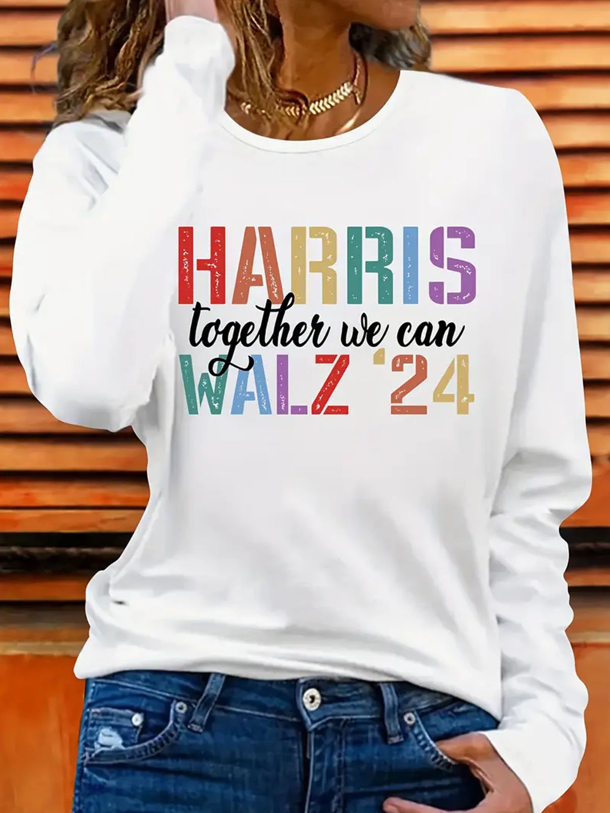 Casual Long Sleeve Crew Neck Text Letters Loose Regular T-Shirt