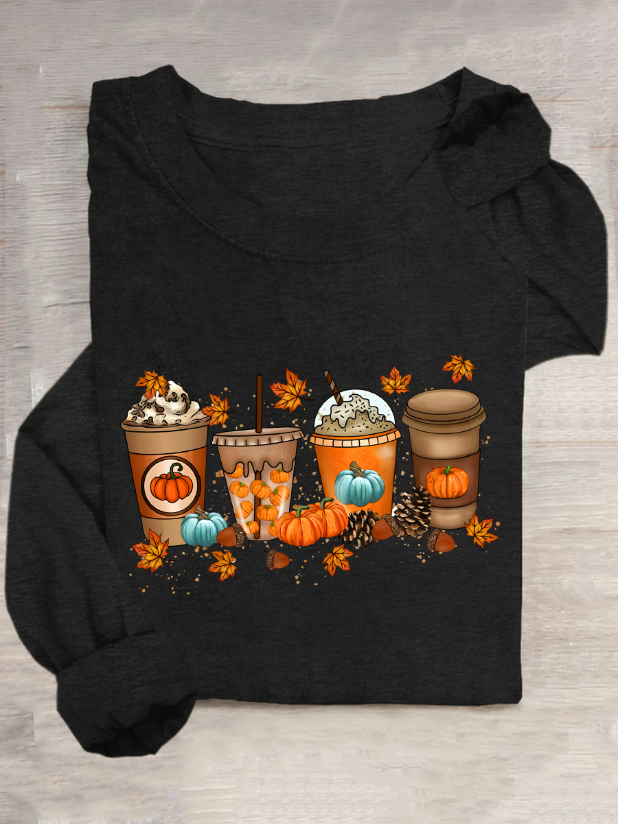 Casual Long Sleeve Crew Neck Text Letters Loose Regular T-Shirt