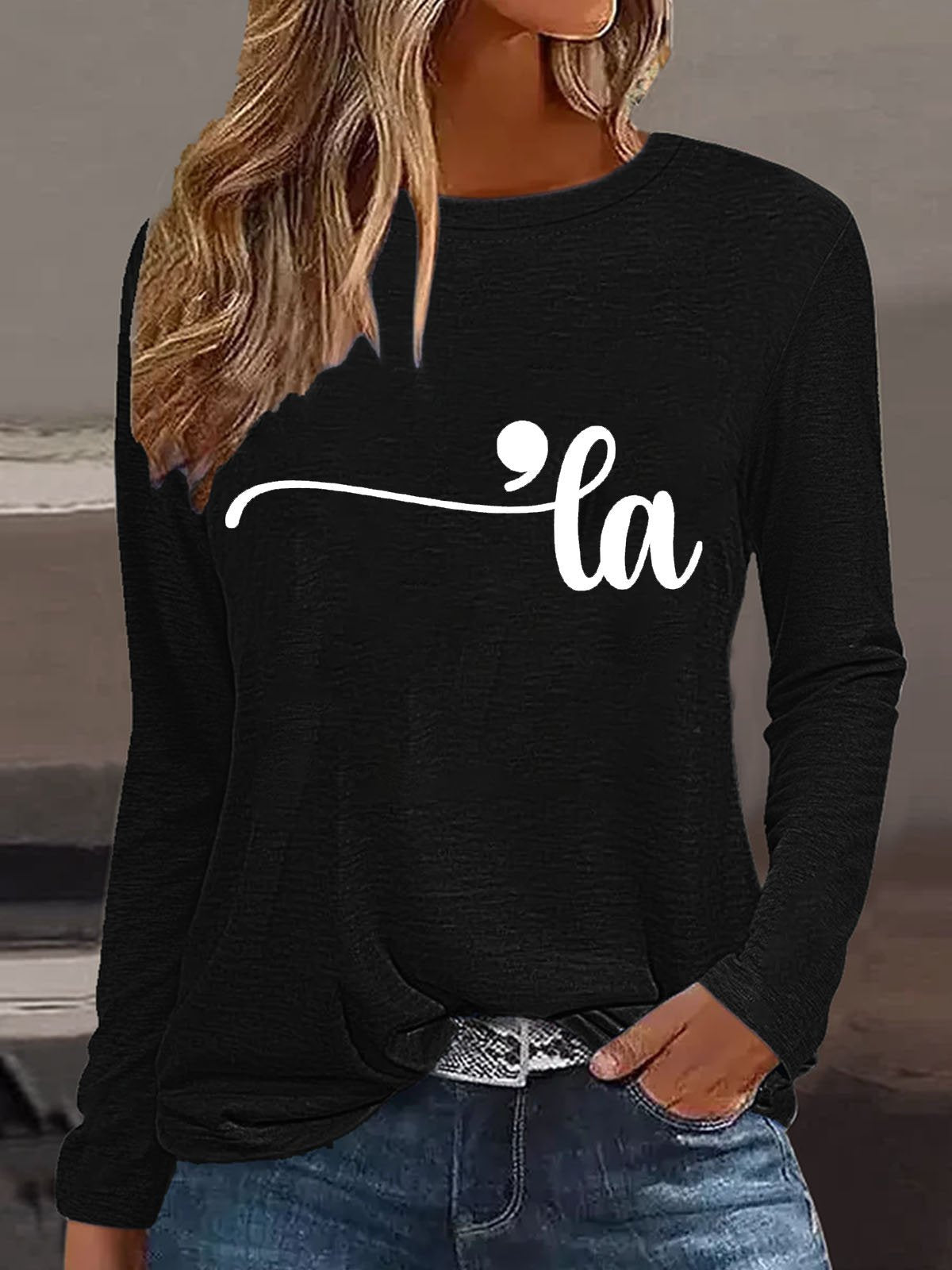 Casual Long Sleeve Crew Neck Text Letters Loose Regular T-Shirt