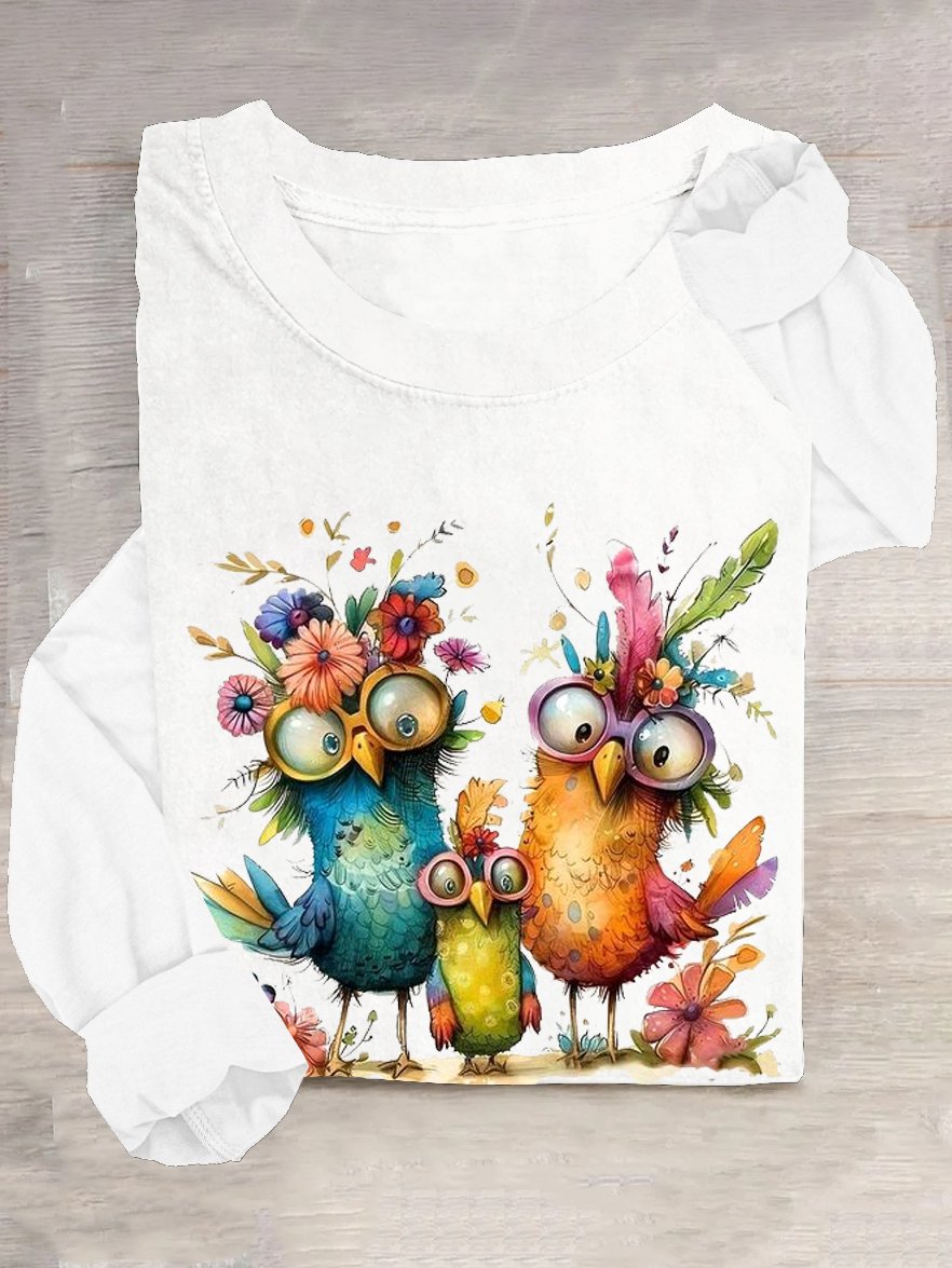 Casual Long Sleeve Crew Neck Turkey Loose Regular T-Shirt
