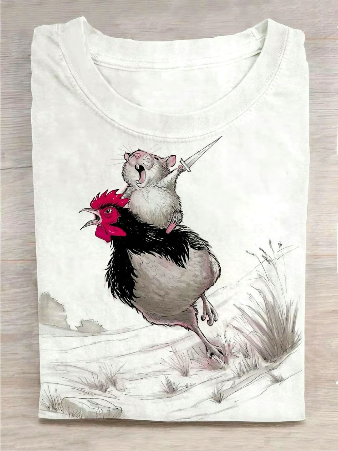 Casual Long Sleeve Crew Neck Turkey Loose Regular T-Shirt