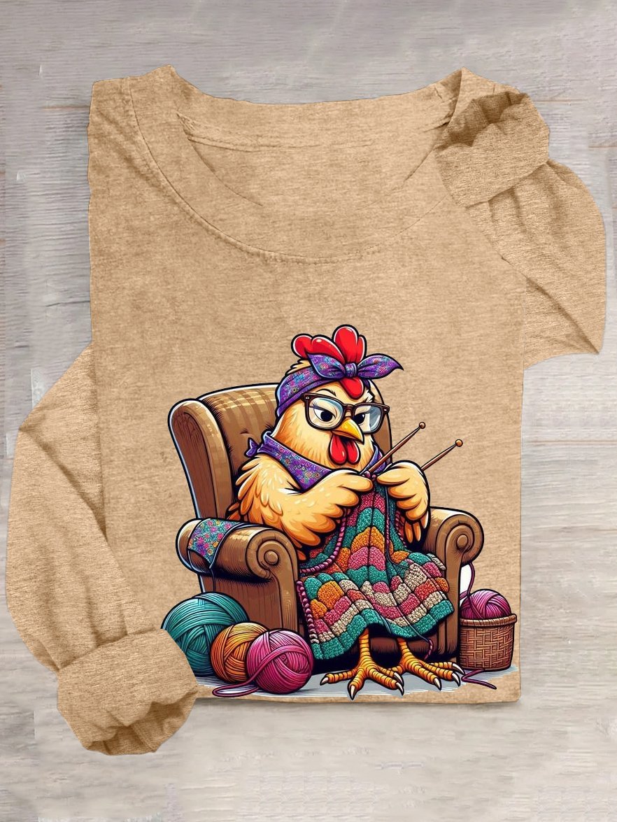 Casual Long Sleeve Crew Neck Turkey Loose Regular T-Shirt