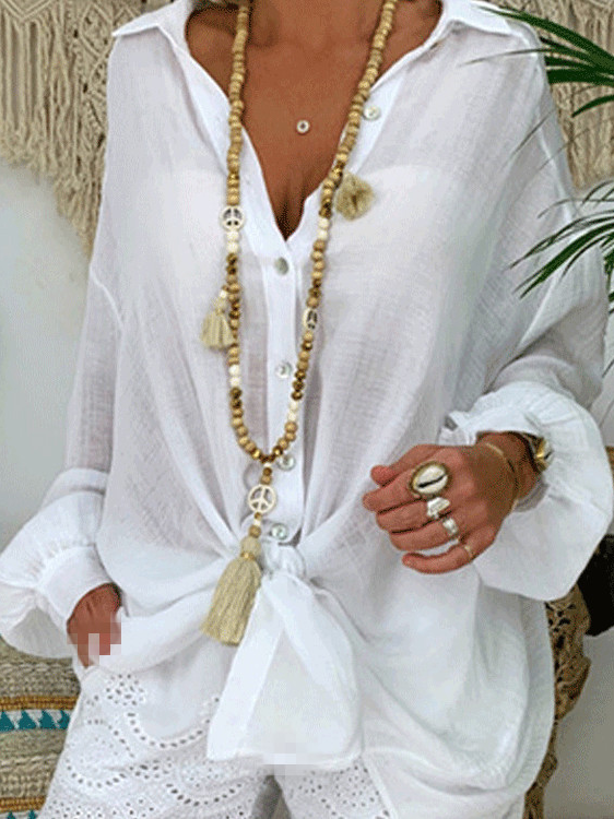 Casual Long Sleeve Shirt Collar Plain Loose Regular Shirt