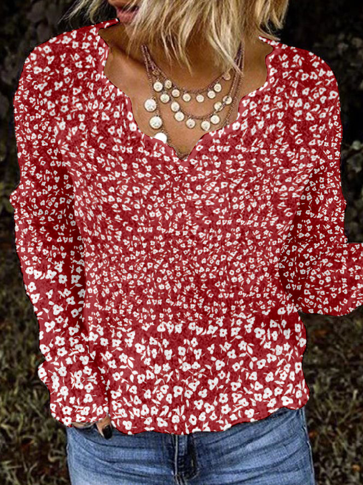 Casual Long Sleeve V Neck Floral Loose Regular Blouse