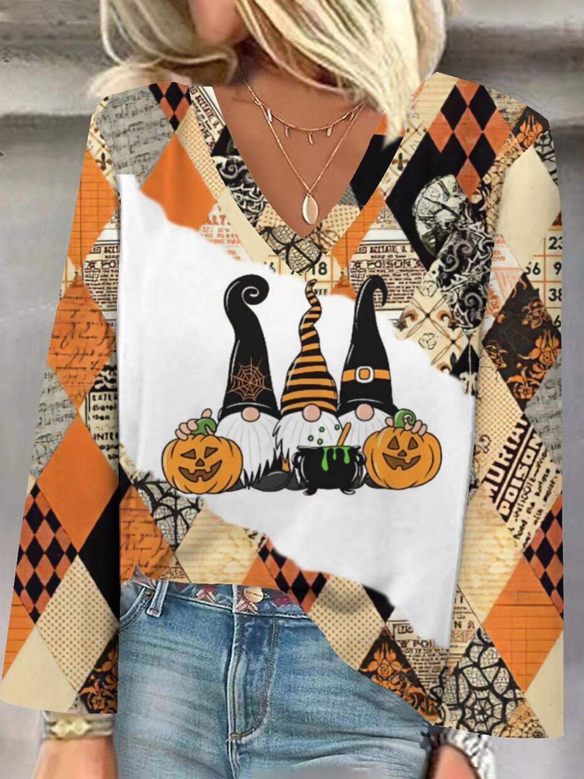 Casual Long Sleeve V Neck Halloween Loose Regular Blouse