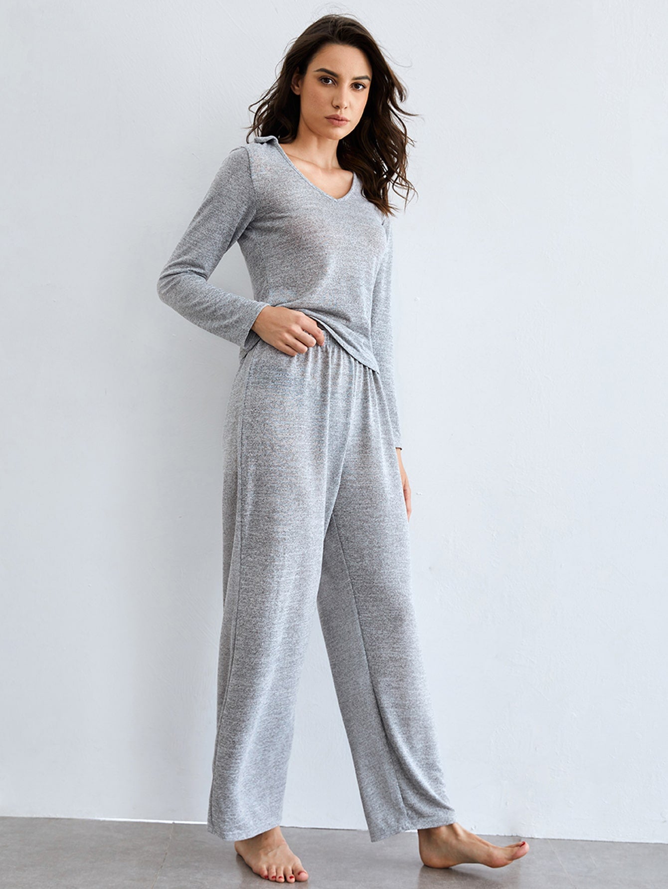 Casual Plain Long Sleeve V Neck Women Lounge Sets