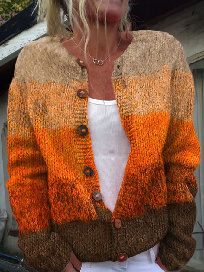 Crew Neck Long Sleeve Color Block Casual Regular Cardigan