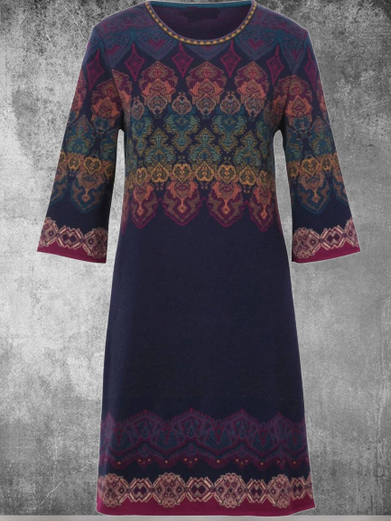 Crew Neck Long Sleeve Floral Vintage Maxi Dress