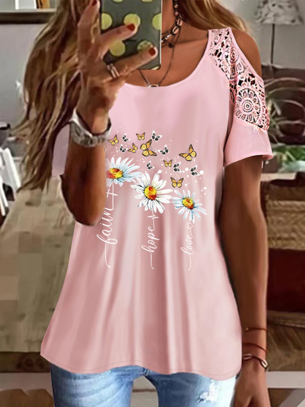 Crew Neck Short Sleeve Floral Casual Regular T-Shirt