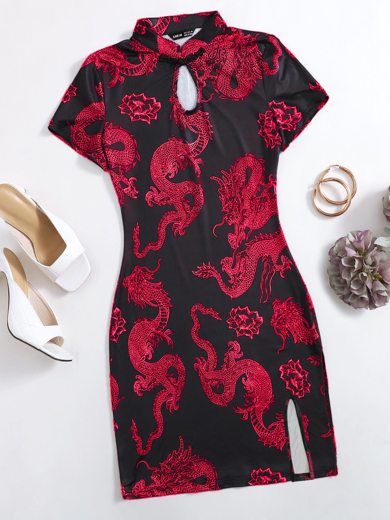 Elegant Animal Cut Out Short Sleeve Mandarin Collar Pencil Natural Short Plus Size Dress
